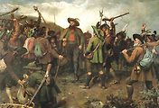 (라쉰 전투의 클라이맥스 장면입니다. 왼편에 몰려오는 폴란드군 선두에 붉은 바지를 입은 사람이 포니아토프스키입니다. 물론 실제로맨 앞줄에 있었는지는 미지수... 아무튼 당시 소총은 농민 출신의 사병들이나 드는 것이었고, 신사 계급인 장교들은 소총을 손에 들어서는 안되는 것이었습니다. 하물며 금수저 총사령관이자 왕자님, 진짜 왕자님이 손에 총검을 들고 병사들 앞에서 돌격을 한다 ? 진정한 노블리스 오블리쥬는 바로 이런 것입니다.)